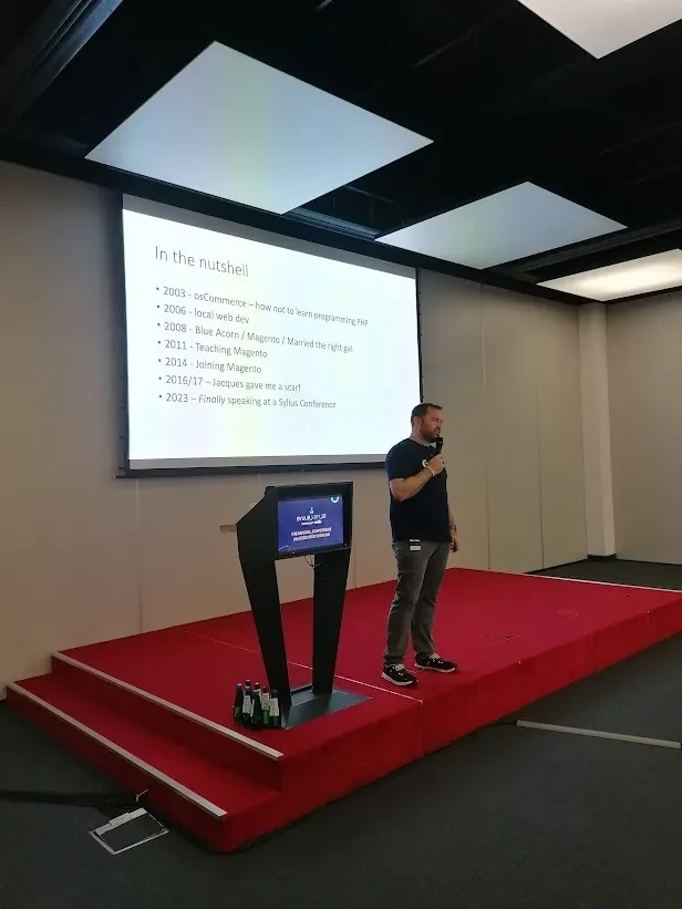 Honestly, I was so busy managing our booth and networking that I only attended one talk (partially). It was the one by the famous ex-Magento’s and current Shopware’s global evangelist Ben Marks called “Community and Chaos: Why Open Source Wins Commerce”.