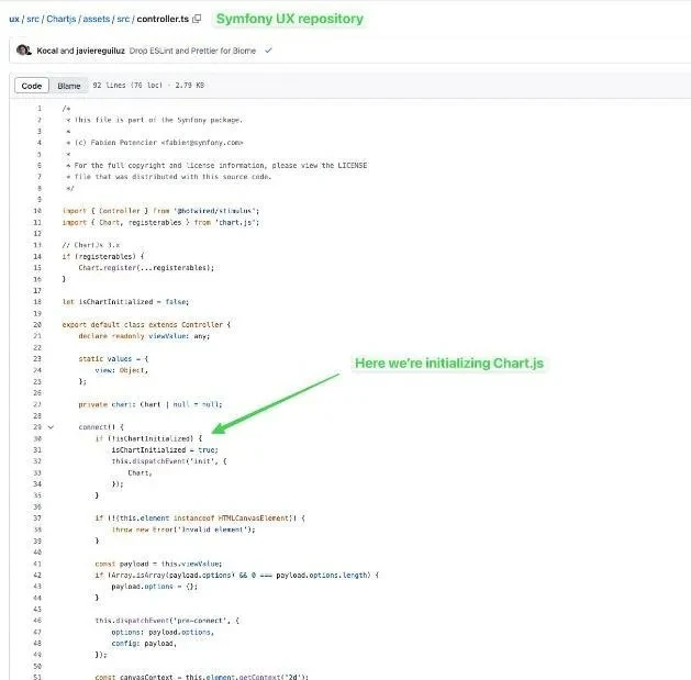 Moreover, Symfony UX takes this integration to a higher level. Instead of writing the data-controller="..." manually, it provides Twig functions like render_chart(...). So, rendering a chart is as simple as you might see on the example below.