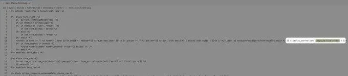 Below is a sample code that we can find on both the React and Stimulus pages. As you can imagine, your Symfony application already exists. Without rewriting your entire application to React, you can simply add Stimulus to your page.