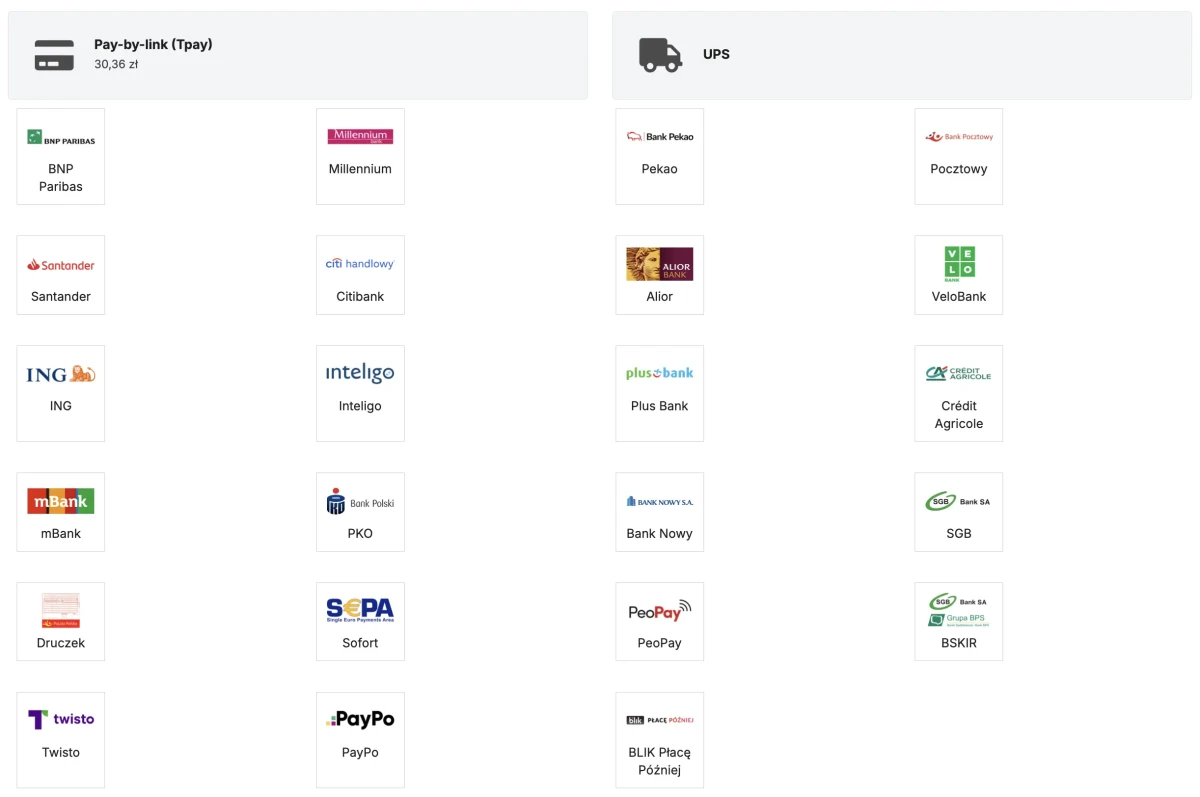 Plugin Tpay dla Syliusa obsługuje wszystkie najpopularniejsze metody płatności w Polsce: